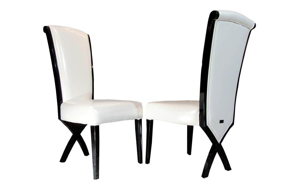 Description Xavira transitional X leg dining side chair with leatherette upholstery has a tall, arched...