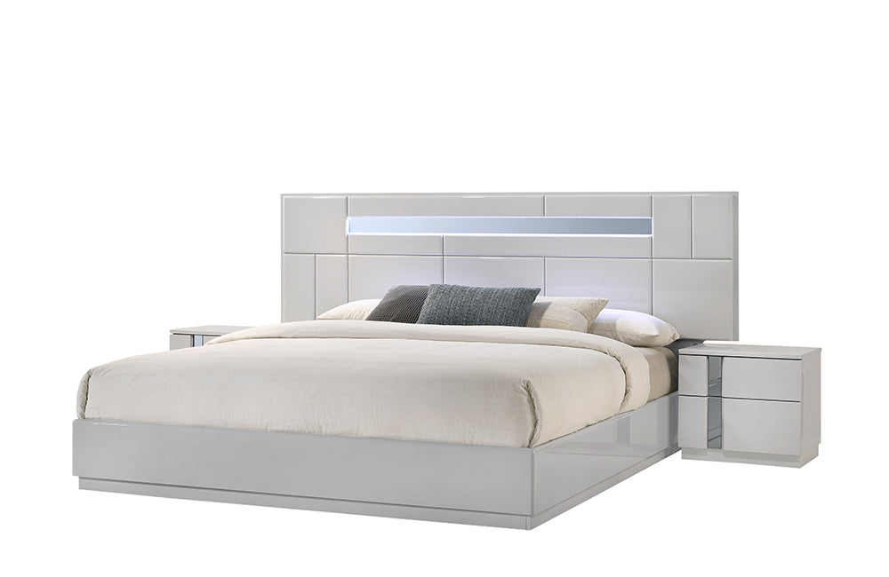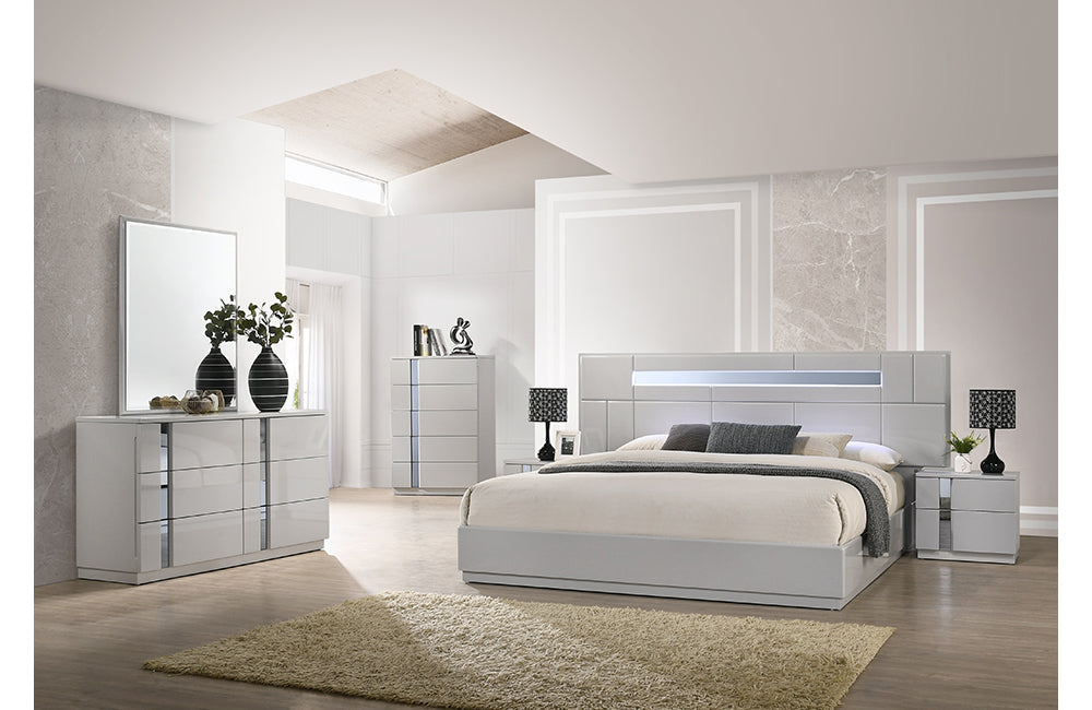 Detail oriented White Lacquer on Chrome. The Palermo Bedroom adds a bold contemporary vibe to your sleep space. White Lacquer with Mirror Accents.