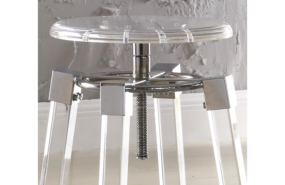 Description Contemporary Rotation-Adjustable Acrylic Stool. Dimensions Box Size: 27 x 18 x 17 Cubes: 4.52...