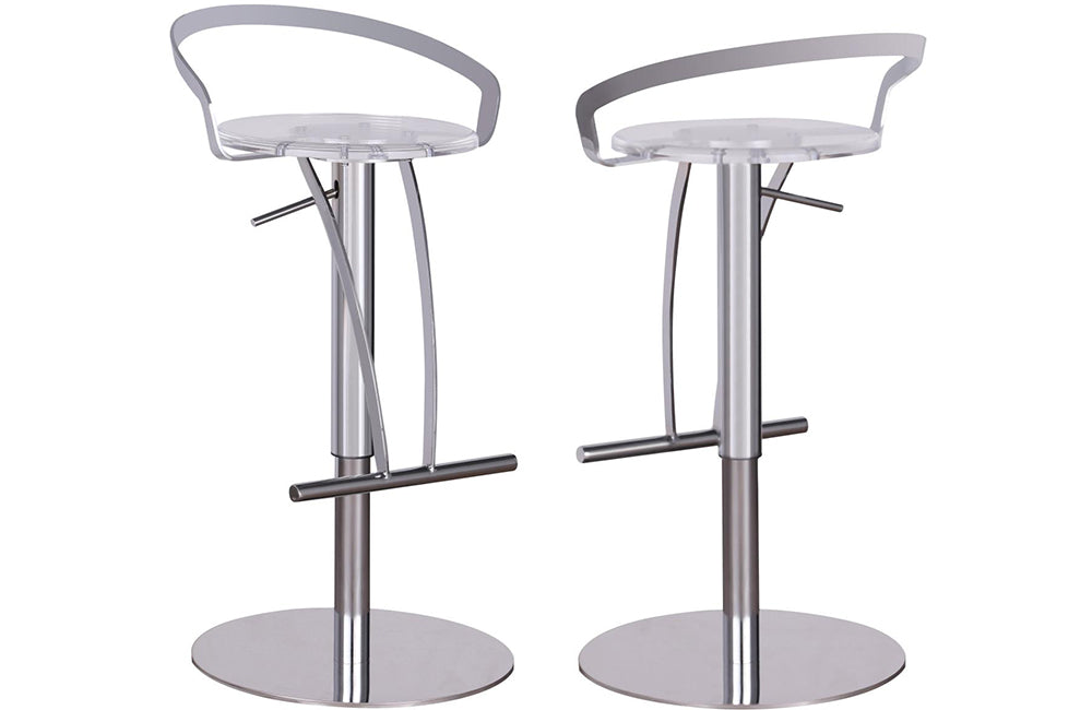 Description Contemporary Pneumatic-Adjustable Stool w/ Solid Acrylic Seat. Dimensions Box Size: 28 X 21 X...
