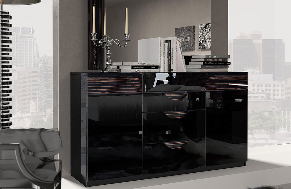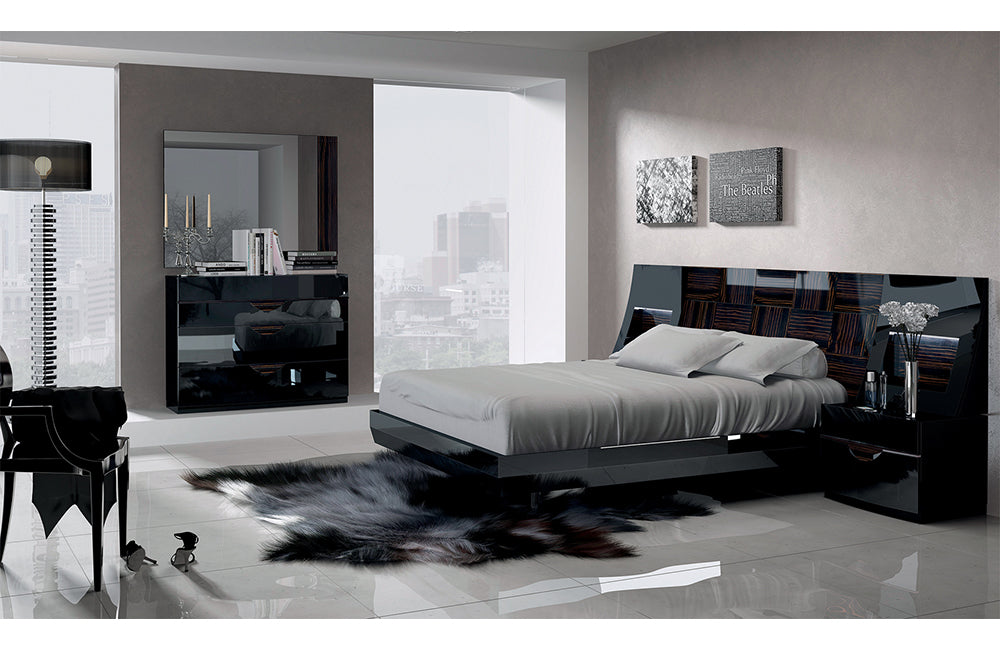 Description Jillian Modern Bedroom Set From Spain finish with high gloss contemporary black bedroom set. Wings...