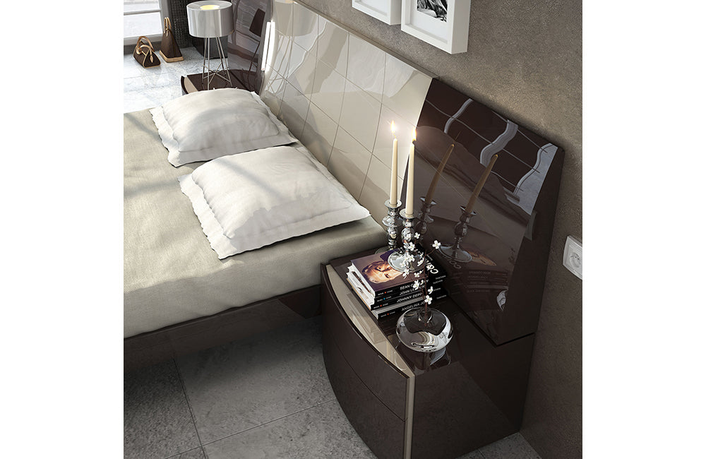 Description Jayce Modern Bedroom Set Colors: Arena/Chocolate BrilloEuropean exclusive design and construction. Brown lacquer finish...