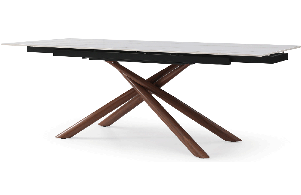 Description Elegant extended ceramic top dining table.Table Top & Ext: 12MMBase: Sanded White powder coated...