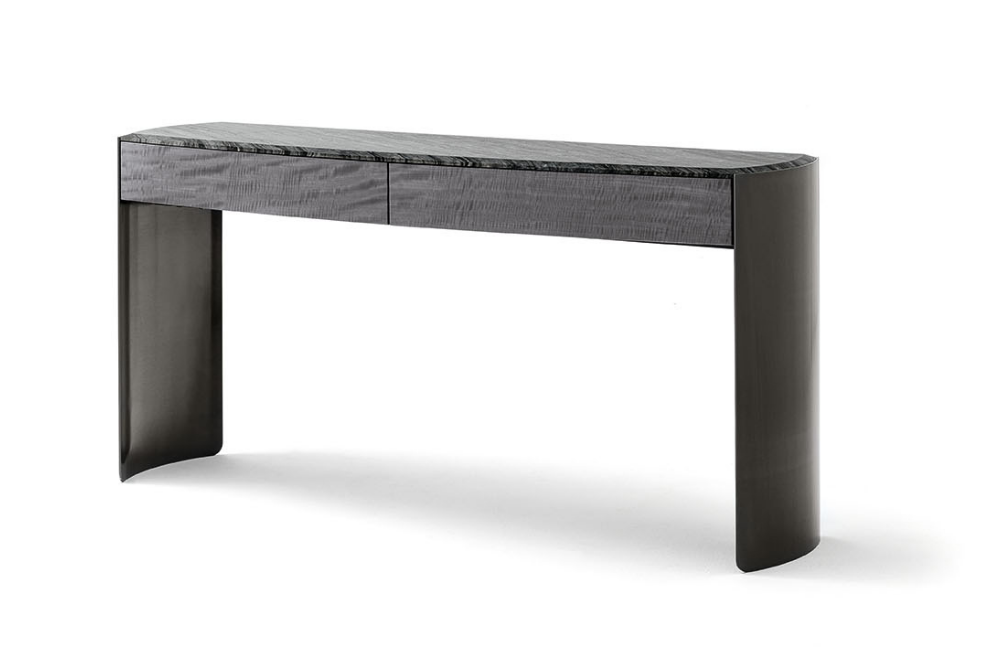 Description Small Consolle in Madagascar figured Mowingui veneer with high gloss polyester fìnish.Top in...