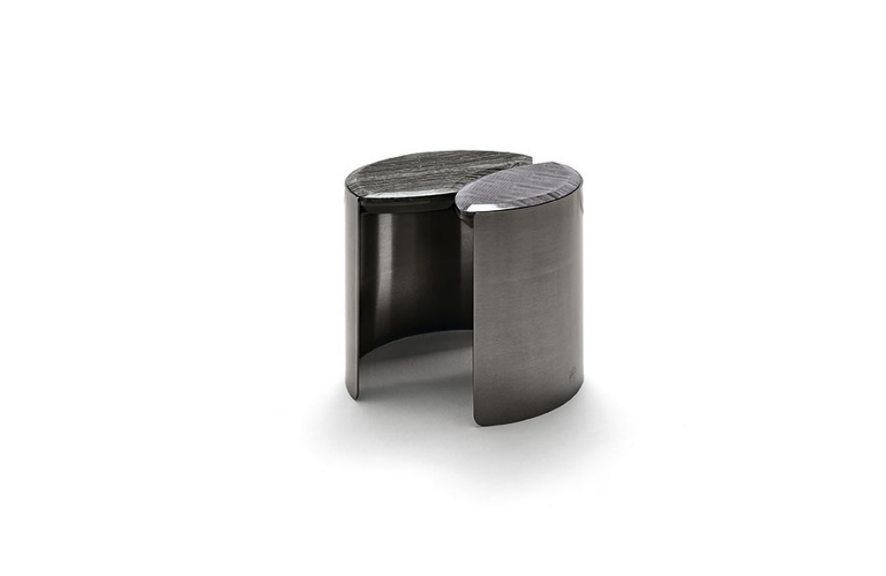 Description Round side table with two tops in Black Kenya marble.Curved legs in satin...