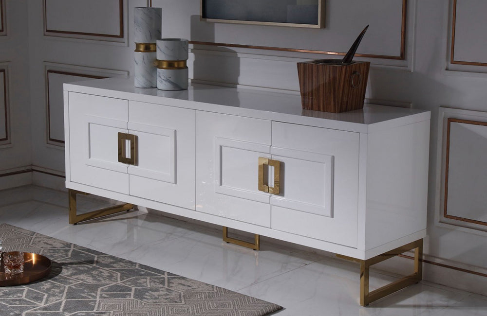 Modrest Leah Contemporary White High Gloss & Champagne Gold Buffet