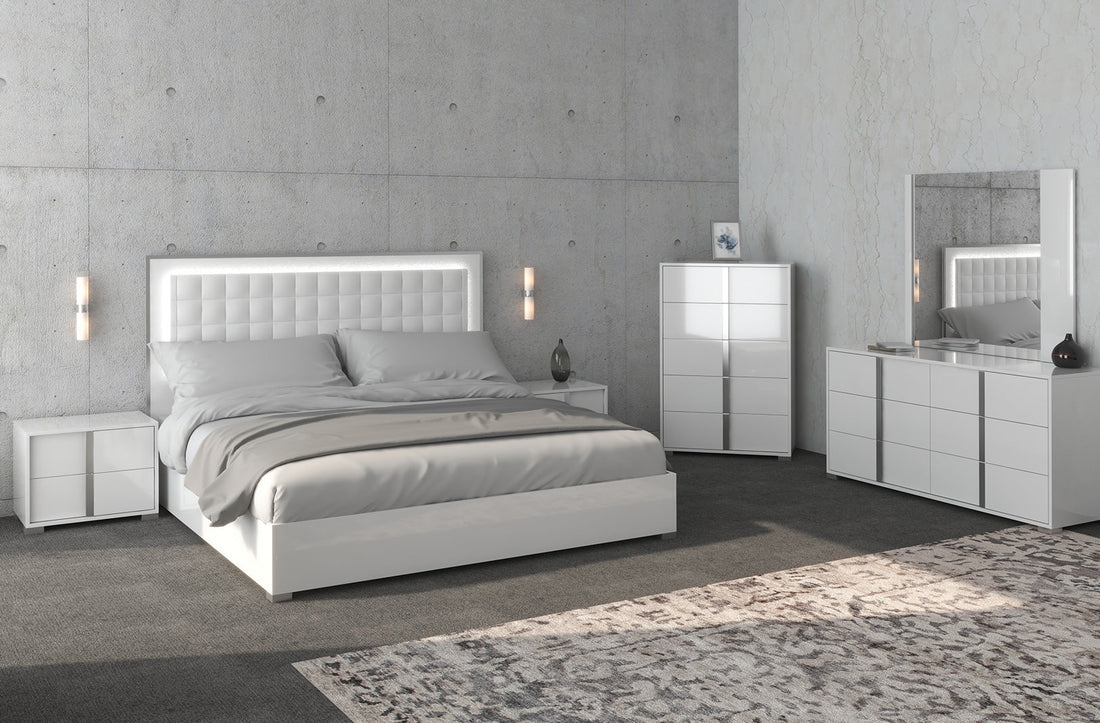 Madrid White Glossy 5 PC King Size Bedroom Set