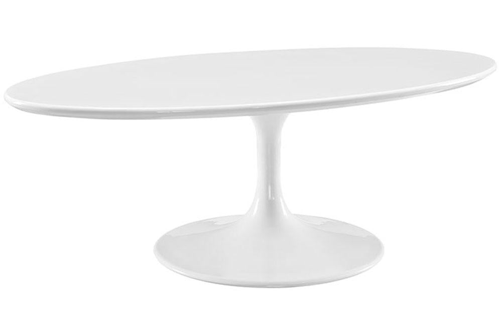 Features Zane 42" Oval-Shaped Wood Top Coffee Table in White Reflecting a seamless organic shape...