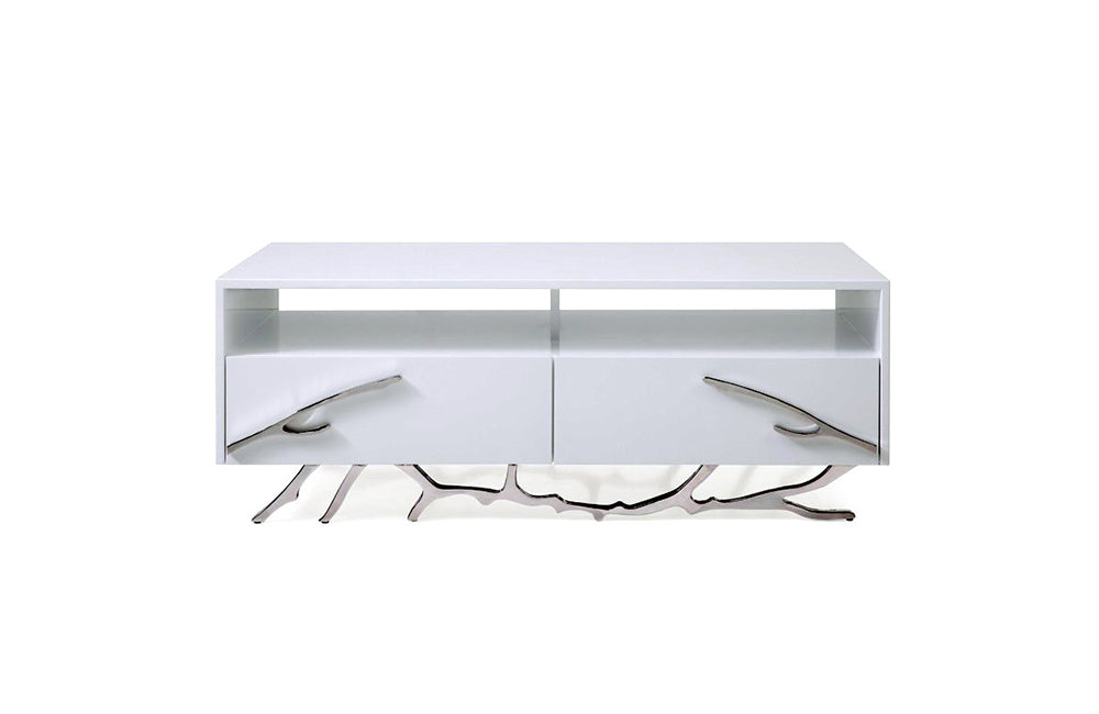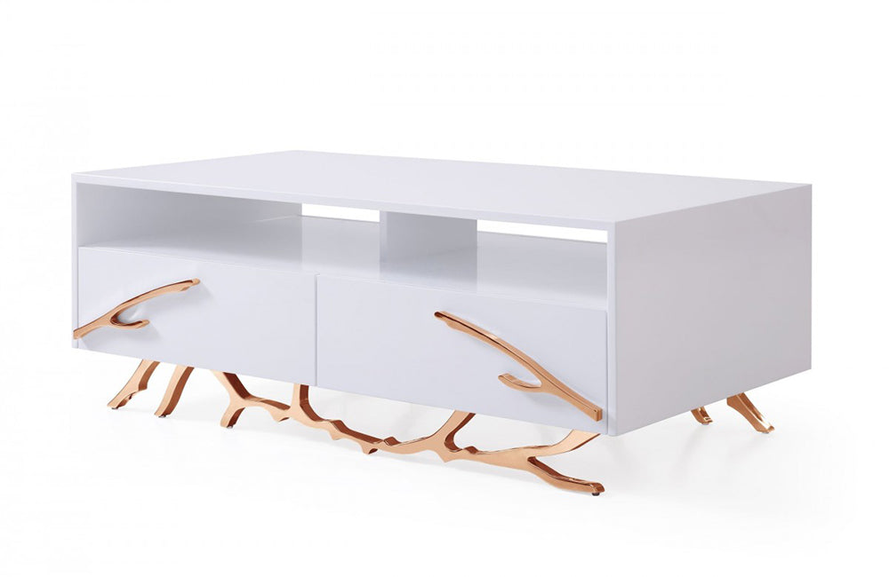 Description White High Gloss Finish Rogegold Stainless Steel Leg & Handles 2 Drawers 2 Storage...