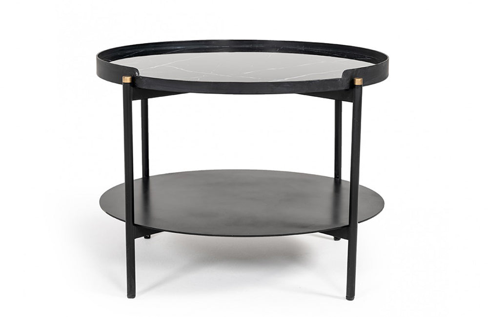 Description Black Marble Painted Top Round Black Metal Base No Assembly Required Dimensions W24" x...