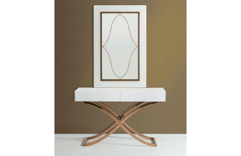 Description Aversa Modern White Crocodile Console Table with Mirror features an exquisite style with dainty white...