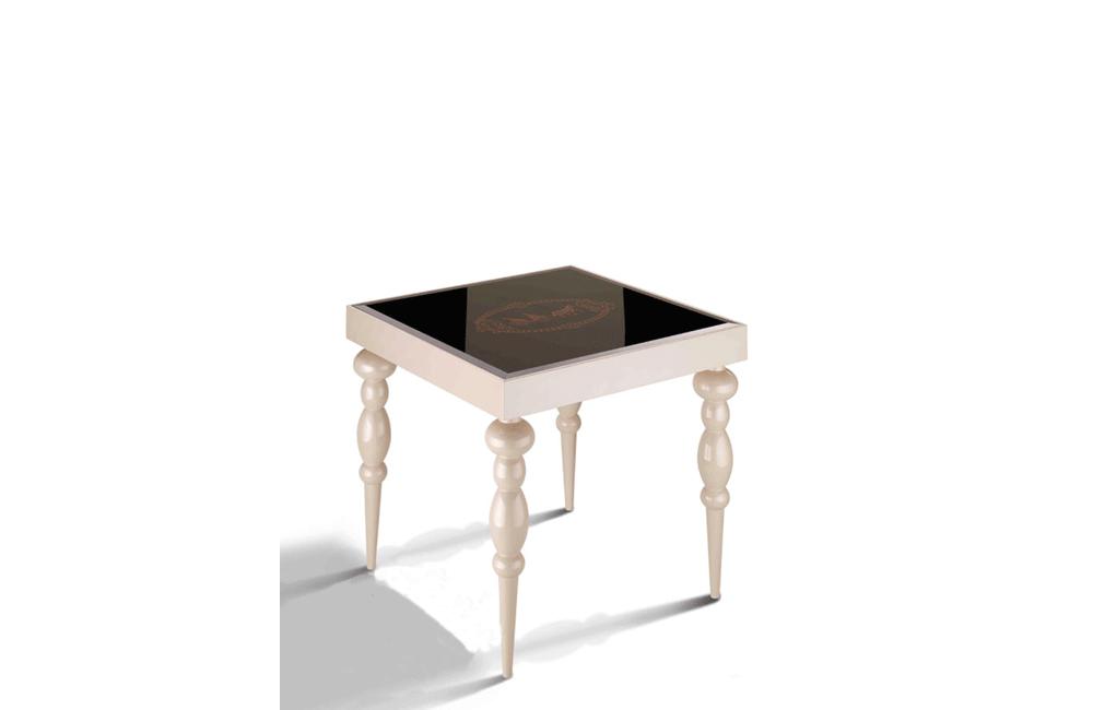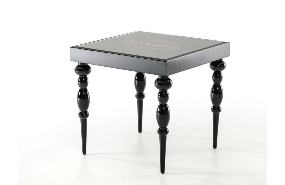 Description The Saure features a black glass top etched with a Champagne gloss finished frame....
