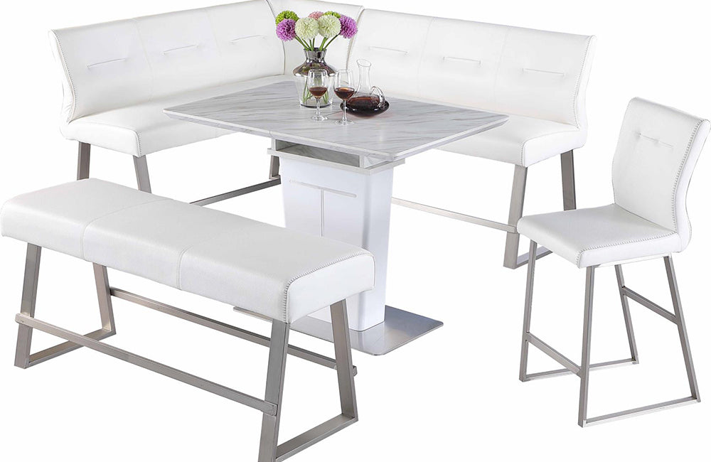 Description Contemporary Dining Counter Set w/ Extendable Table, Reversible Nook, Bench & Stool. Dimensions Cubes:...