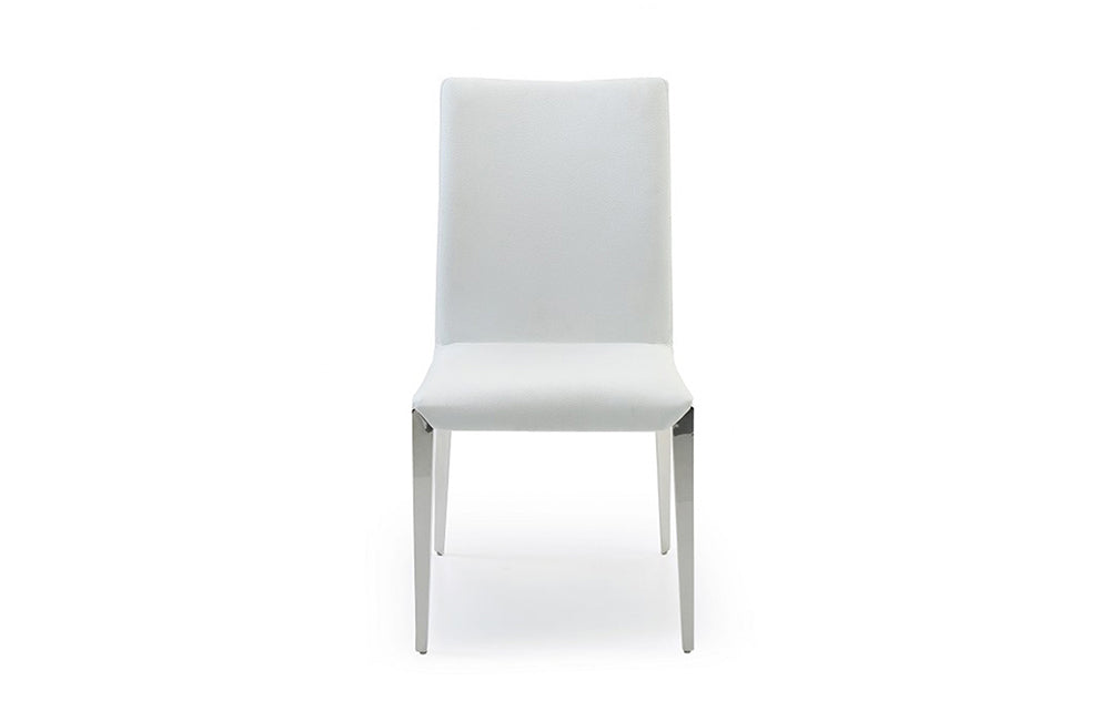 Description Stylish White Side Chair with Eco Leather and Stainless Steel Legs from the Extravaganza...