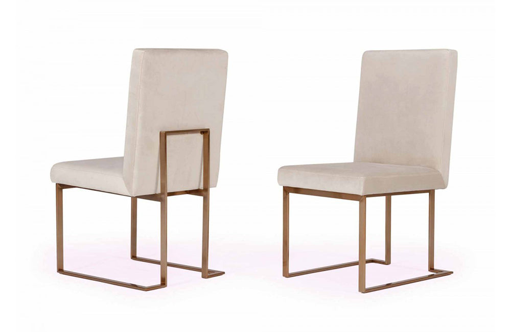 Modrest Fowler Modern Beige and Brass Velvet Dining Chair Set of 2