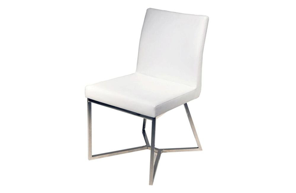 Description Nicia dining chair with contour back cantilever, chrome base and PU leather upholstery in white...