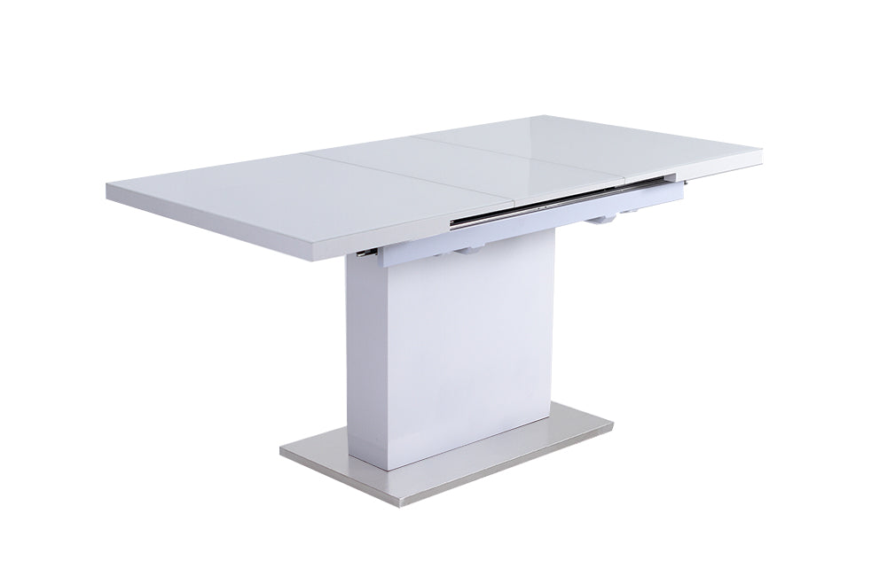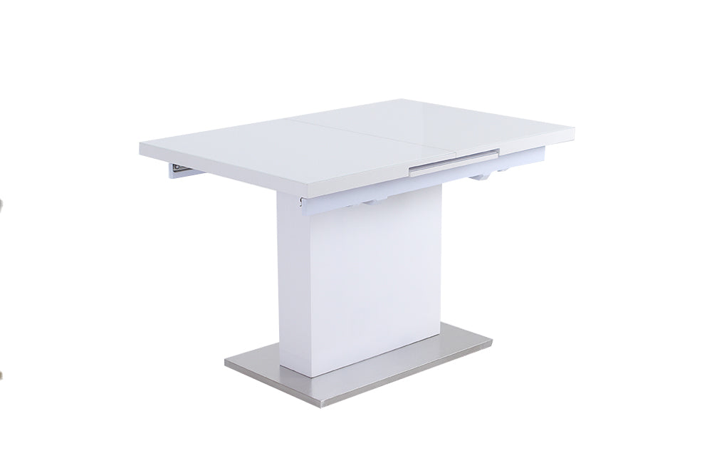 Description Lara Glass Top dining table with pop up extension. White Tempered glass over a...