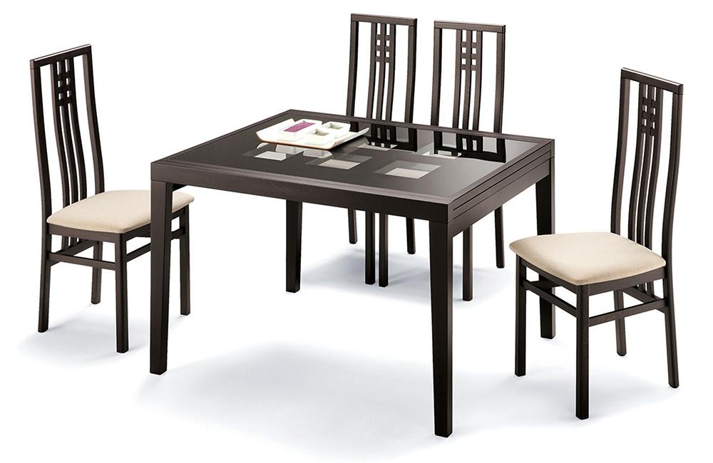 Description Roman Dining Set TABLE: Glass, not frosted, white paint under the glass.CHAIRS: Eco-leather Dimensions...
