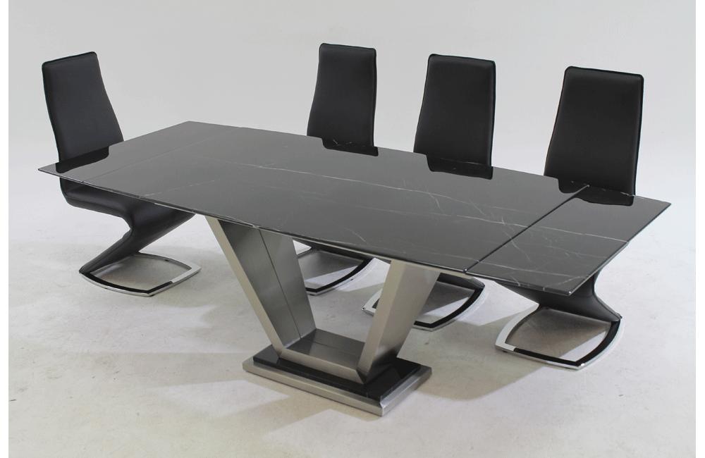 Description Set includes: Tom Black Marble & Brushed Stainless Dining Table & 4 Ilaria Dining Chairs in...