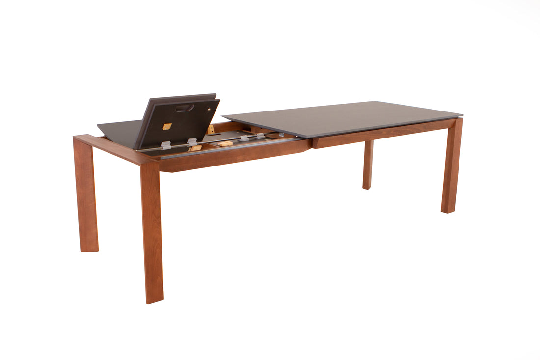 TEGEL WALNUT GRAY FENIX TOP DINING TABLE WITH TWO EXTENSIONS