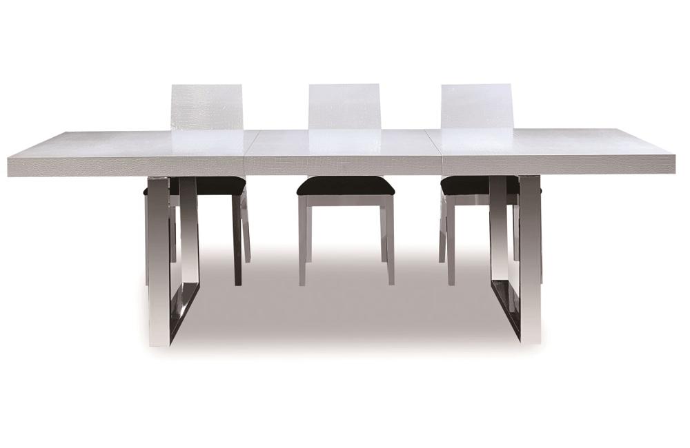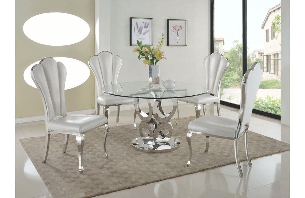Description Modern 5 Piece Dining SetCeri Collection by Casa EleganzaSturdy ConstructionGloss White FinishPolished Stainless Steel Dining...