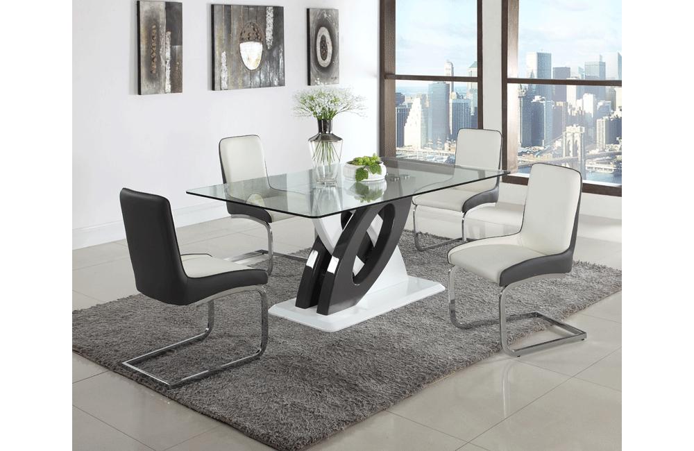 Description Ilaria 5 PC Black Dining Set - table with 4 black "Z" style side chair.Edges...
