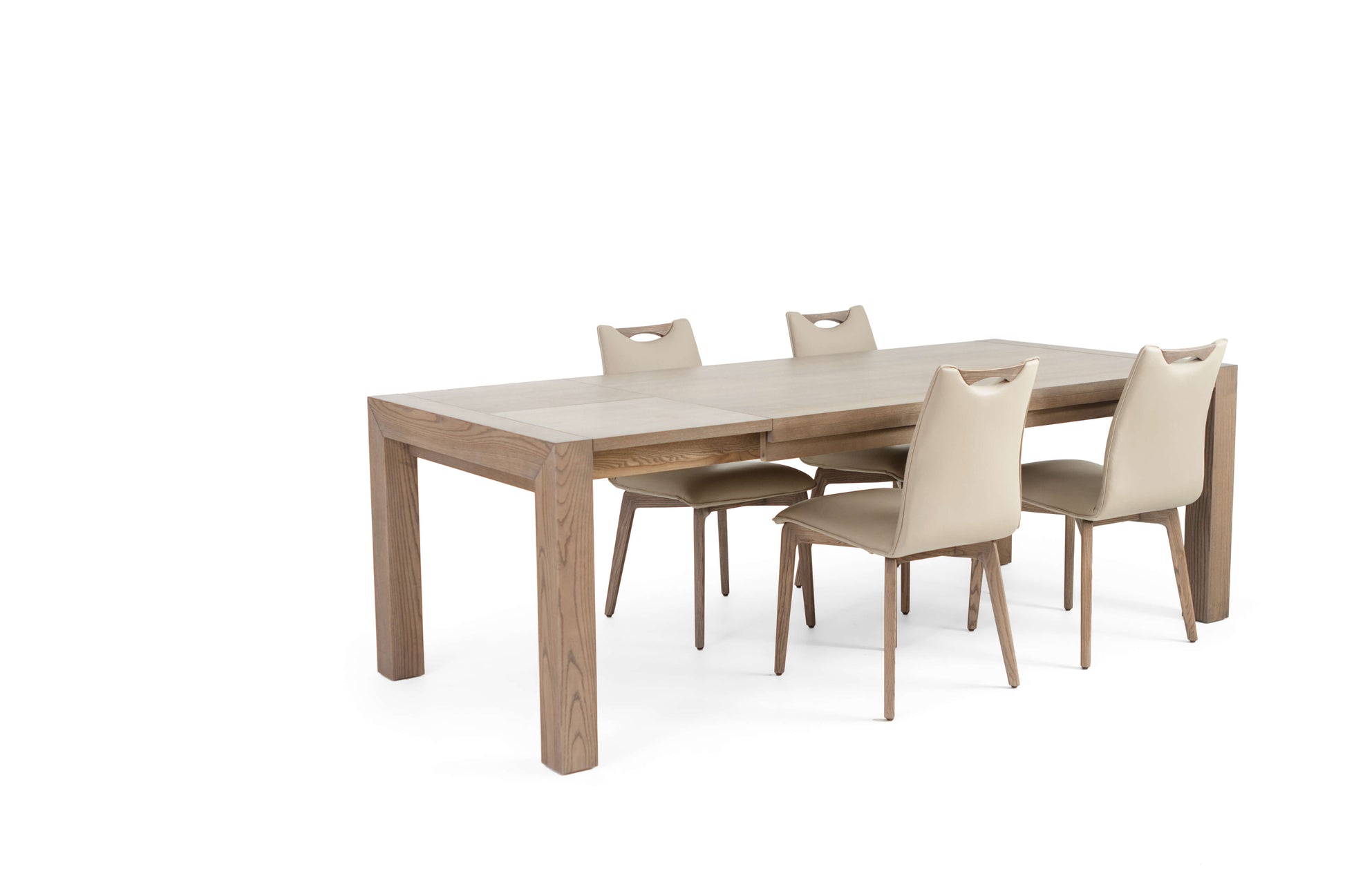 Rhine Ash Gray Dining set with Ritz  Beige 100%  Leather chairs.  Simple, stylish and built to last for years. German extension mechanism. Open and close with one hand only.