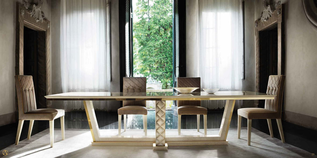 Description 1 Table & 4 Chairs ABIGAIL-DT-B Art Deco Base Finish: Polished SS Standard Pack - Semi...