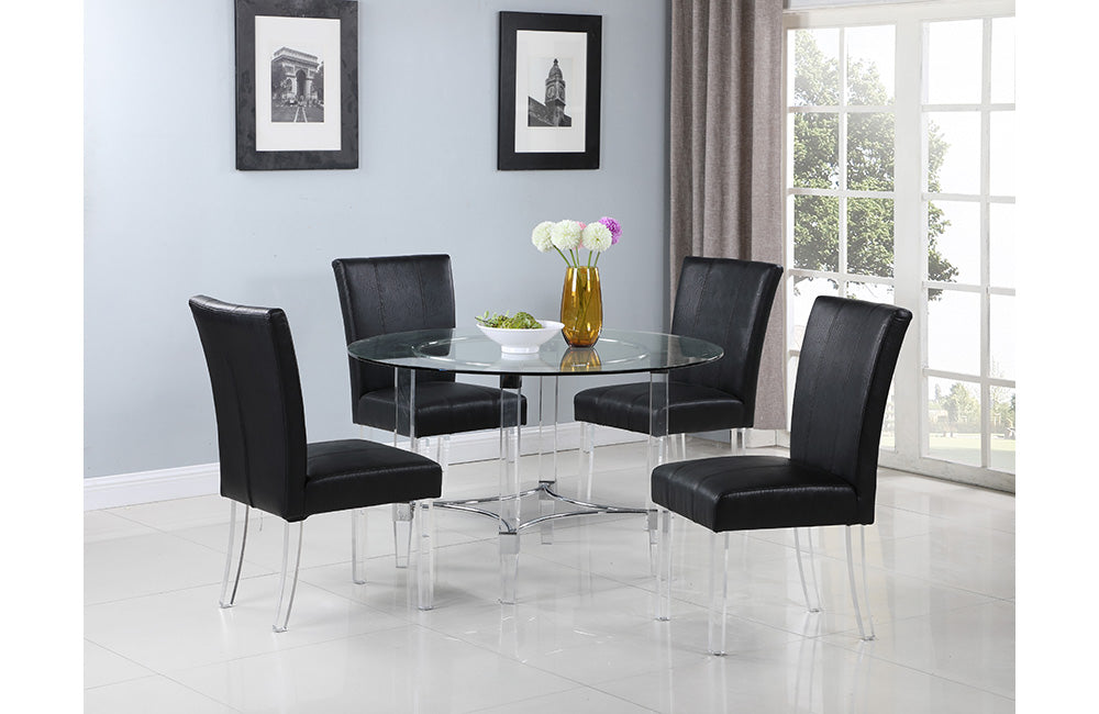 Description 1 Table & 4 Chairs Dining set w/ Glass Top Table & Tufted Back Side Chairs....