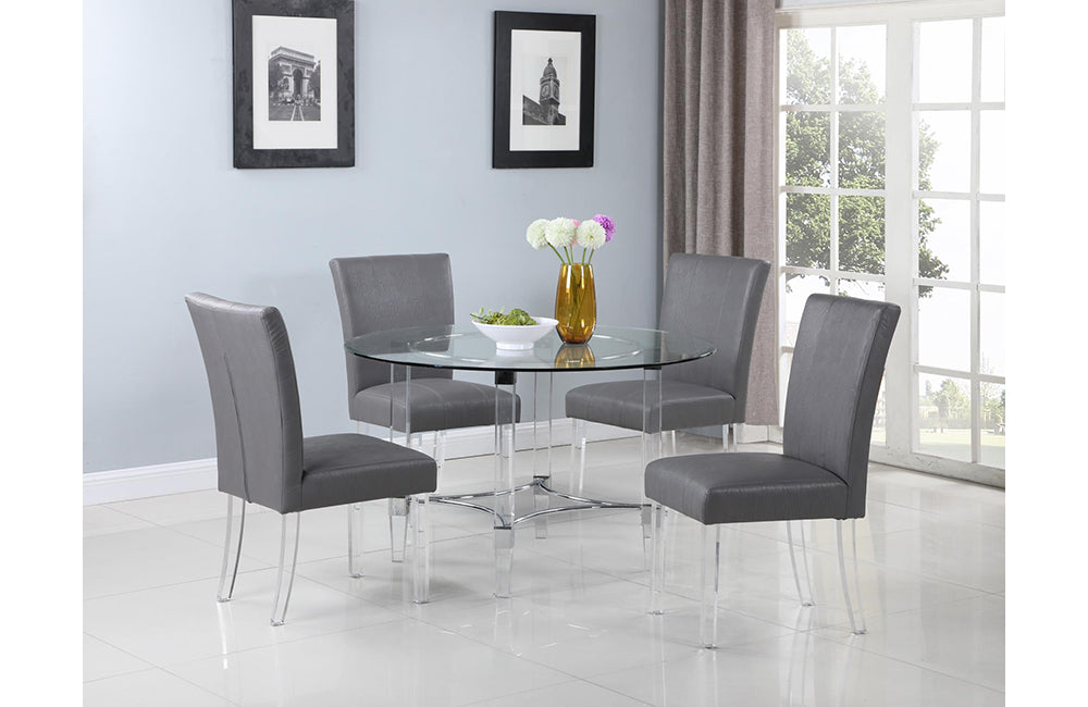 Description 1 Table & 4 Chairs 48" x 48" Round 10mm Pencil Polished - 1" Bevel Clear...