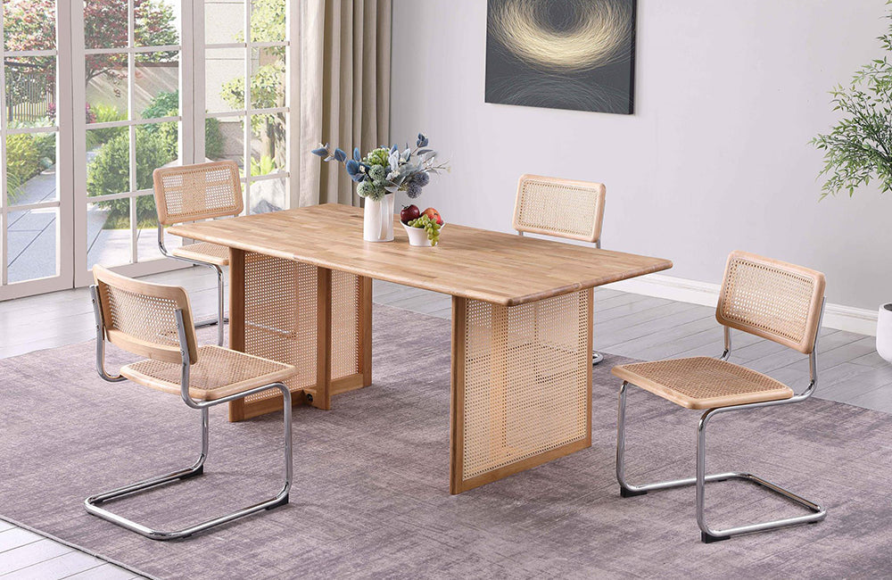 Description 1 Table & 4 Chairs Modern All-Wood Dining Set w/ Rattan Design. Dimensions Cubes: 42.61 AMPSKU...
