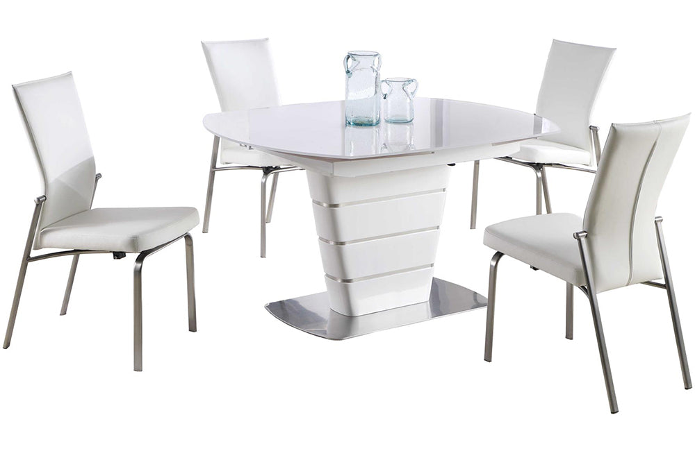 Description 1 Table & 4 Chairs ABIGAIL-DT-M Stainless steel frame Finish: Gloss White Standard Pack - Semi-KD,...