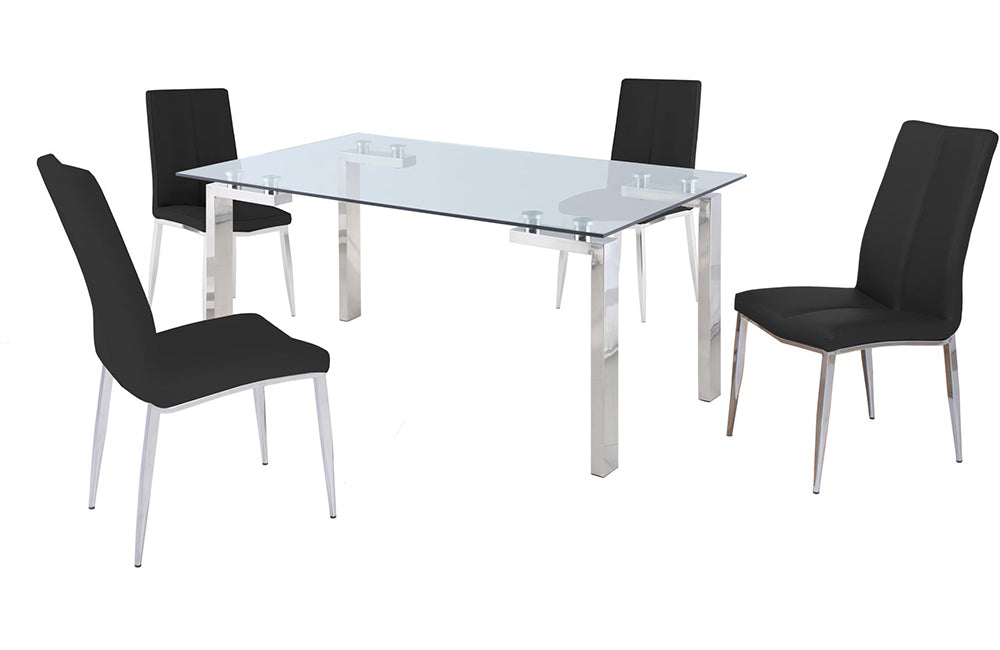 Description 1 Table & 4 Chairs Dining Set w/ Black Glass Table & Open Back Chairs Dimensions...