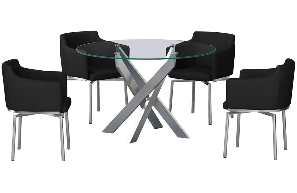 Description 1 Table & 4 Chairs Dining Set w/ Round Glass Table & Swivel Club Chairs. Dimensions...