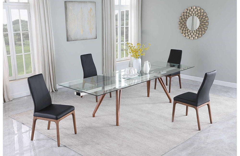 Description 1 Table & 4 Chairs Modern Dining Set w/ Extendable Glass Table & Black Contour Back...