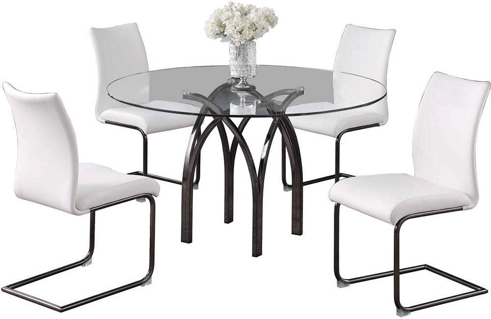 Description 1 Table & 4 Chairs Contemporary Dining Set w/ Round Glass Table & Cantilever Chairs. Dimensions...