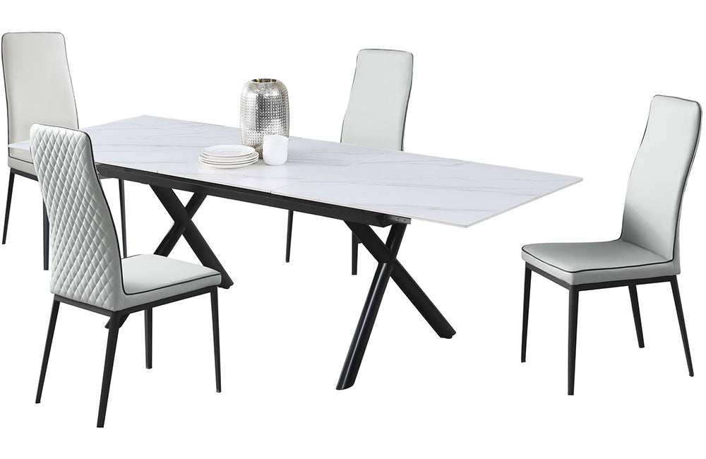 Description 1 Table & 4 Chairs Dining Set w/ Marbleized Sintered Stone Extendable Table & Diamond Stitched...