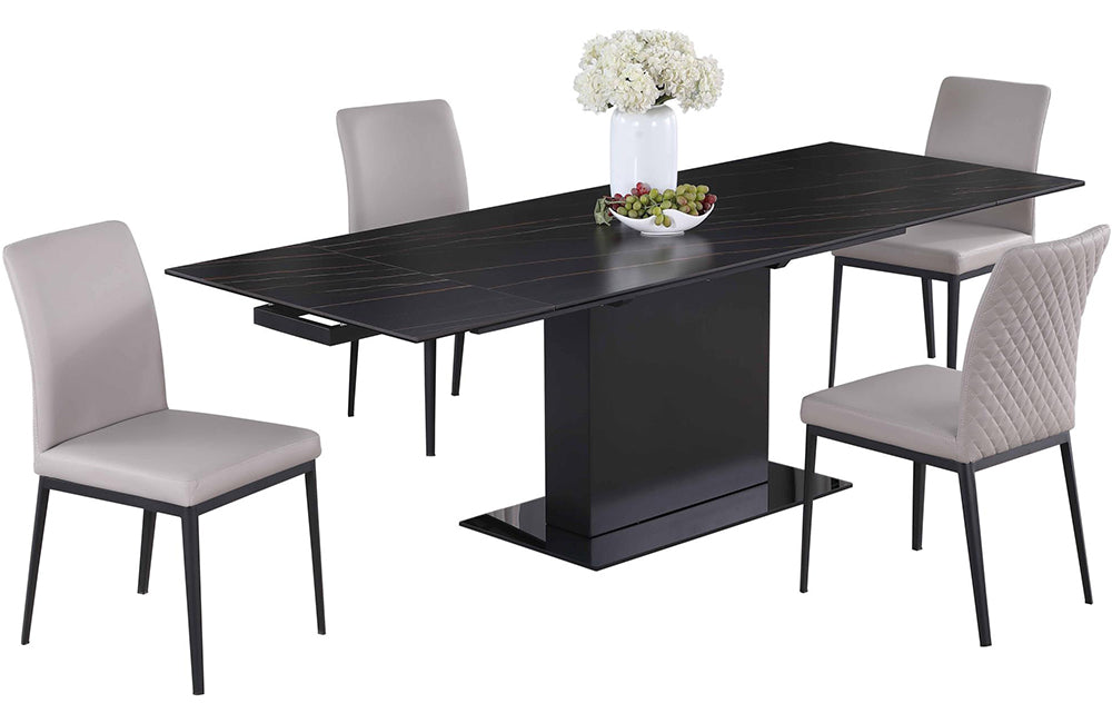 Description 1 Table & 4 Chairs Contemporary Dining Set w/ Extendable Sintered Stone Table & 4 Motion...