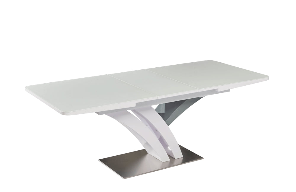 Description Ceri dining Modern design gloss white dining table top with stainless steel base plate....