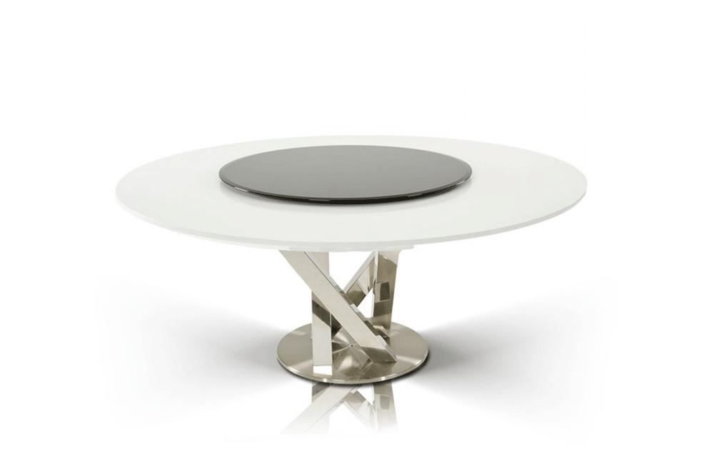 Description Modern round dining table with white crocodile lacquer table top,black tinted glass table top...