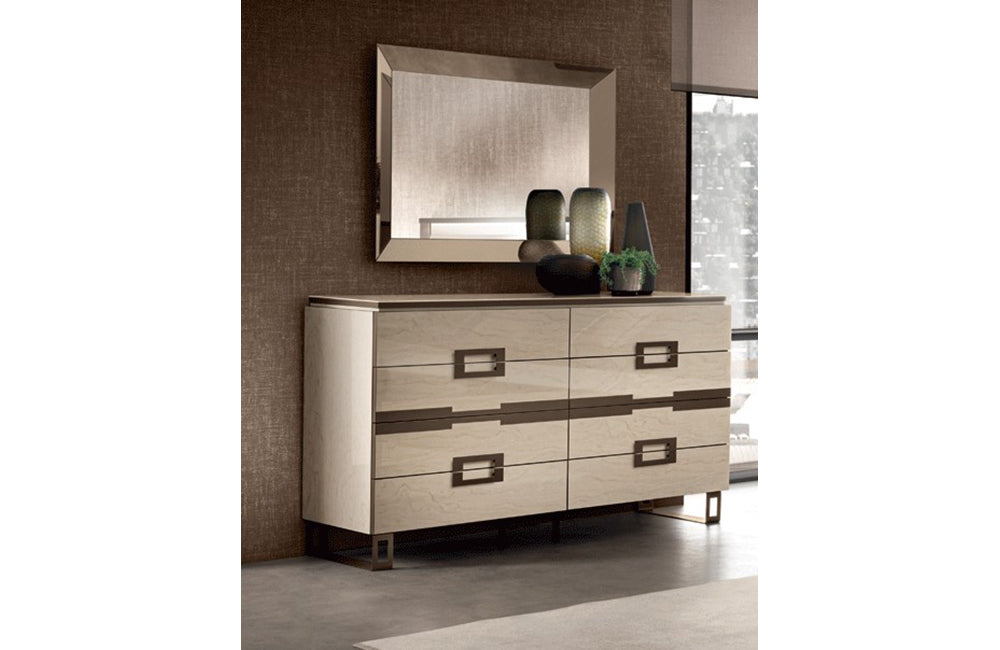 Description PLATINUM bedroom furniture set in Beige. Modern lines combined with Art Deco’ details. A...