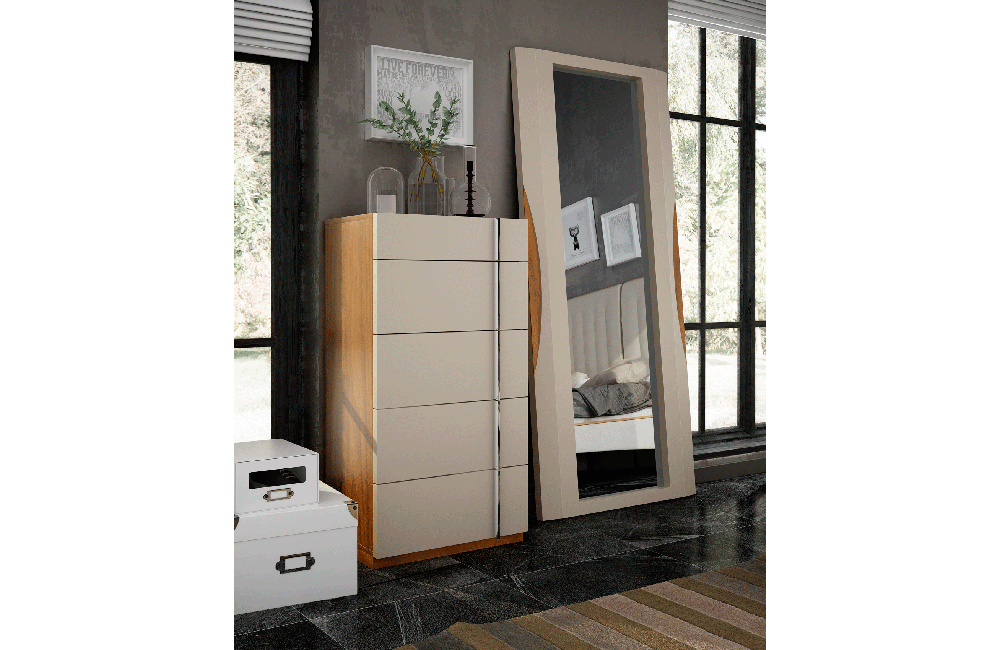 Description Finishes: MATT ARENA LACQUER & NOGAL NATURAL WOOD VENEER / FABRIC OKIOS CREMAWIDTH QS...