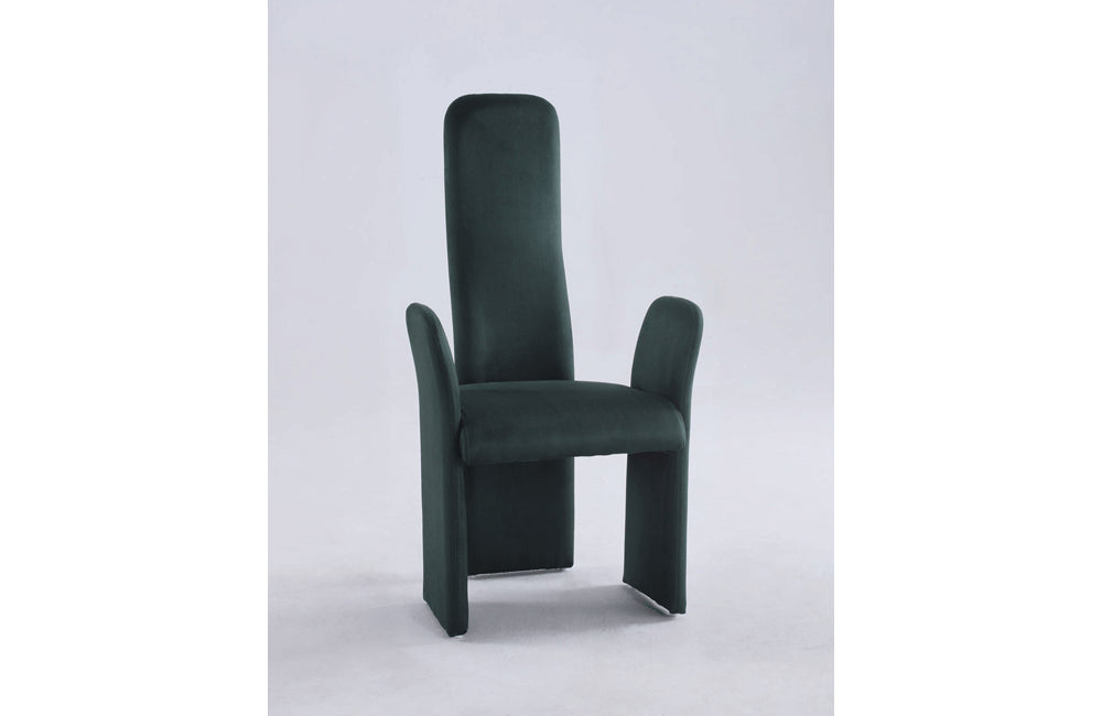Description This stylishly ostentatious armchair is fully upholstered in soft green fabric. Its ultra modern profile...