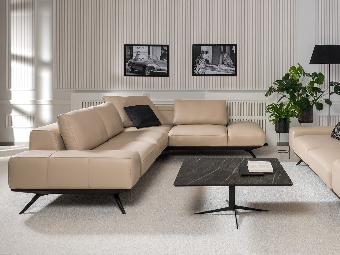Elva U-shape Left Chaise Beige Leather Sectional