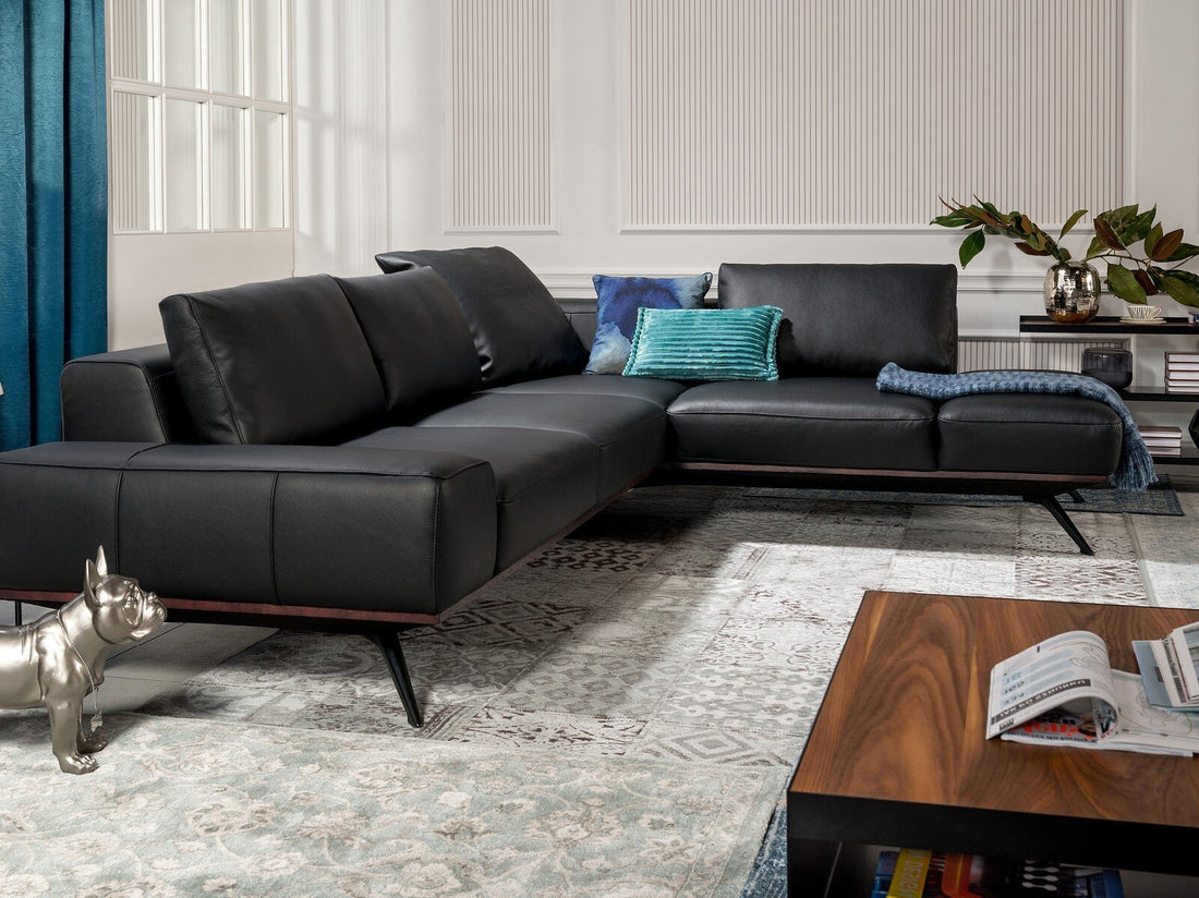 Elise Black Mid Century-Modern Leather Sectional