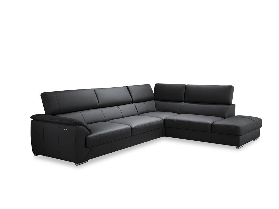 Nicole Black Leather Sectional Right Facing Chaise with power adjustable seats
