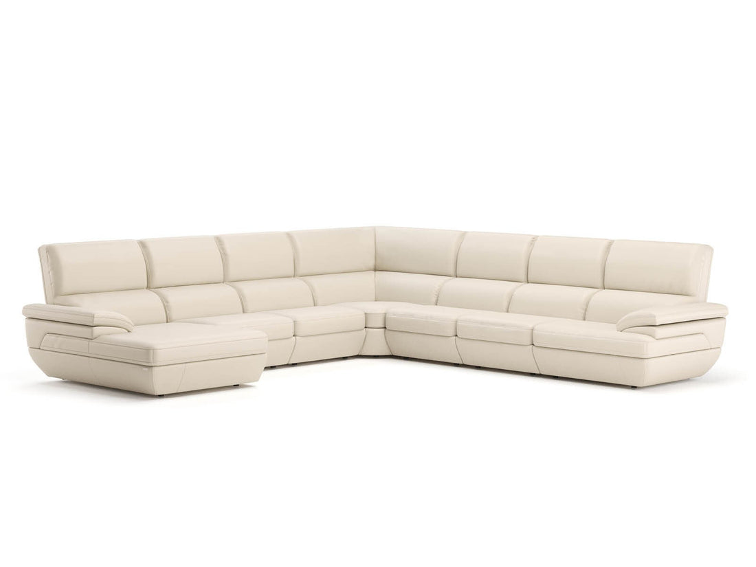 Nicole Ivory Leather Sectional Left Facing Chaise with power adjustable seats