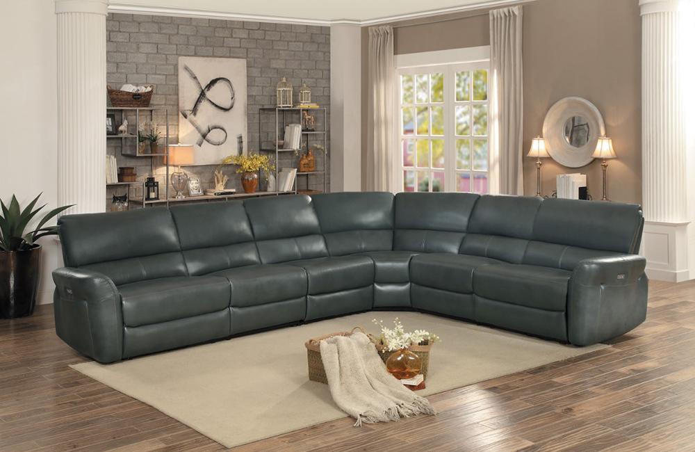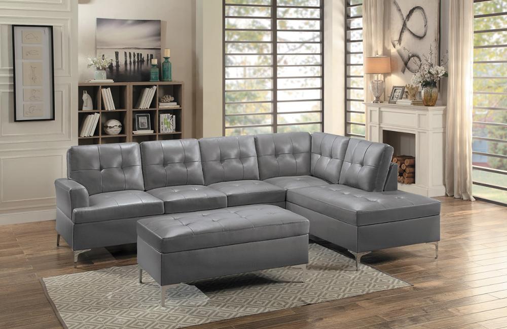 Description The Palinuro Modern Gray Leather Sectional Sofa features a smooth gray full genuine leather...