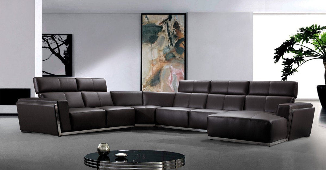 Leonardo Brown Eco-leather Reclining Sectional Sofa