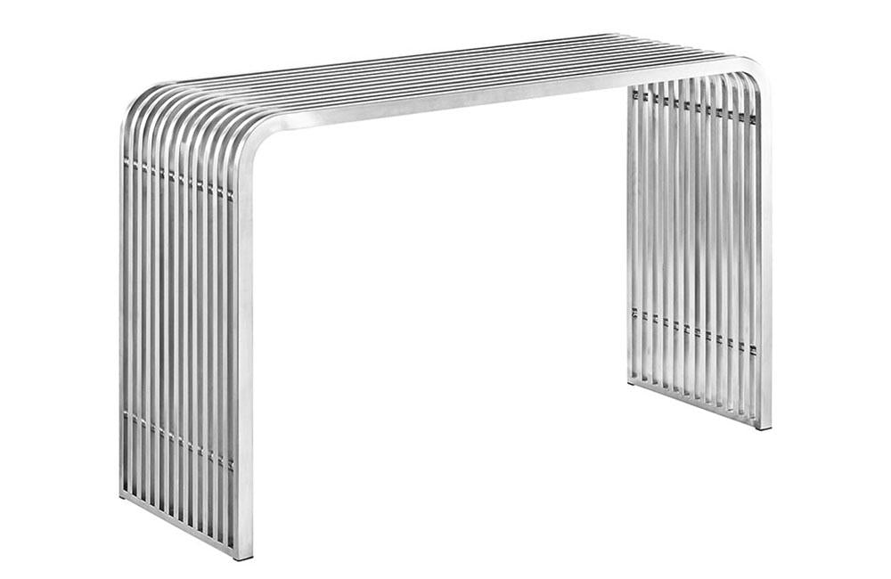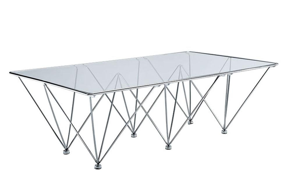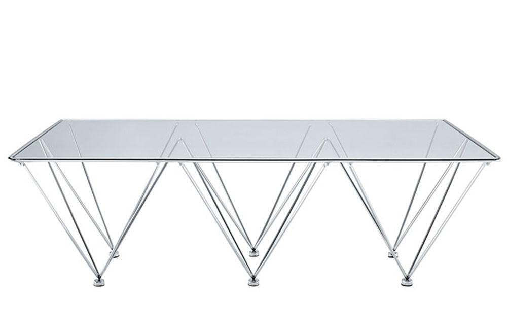 Description Two Rectangular Motion Tempered Clear Glass Cocktail Table With Rectangular Brushed Stainless Steel Cocktail...